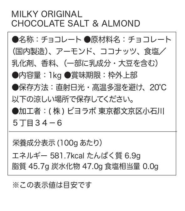 【大容量】オリジナルチョコレート MILKY CHOCOLATE "SALT & ALMOND" 1kg