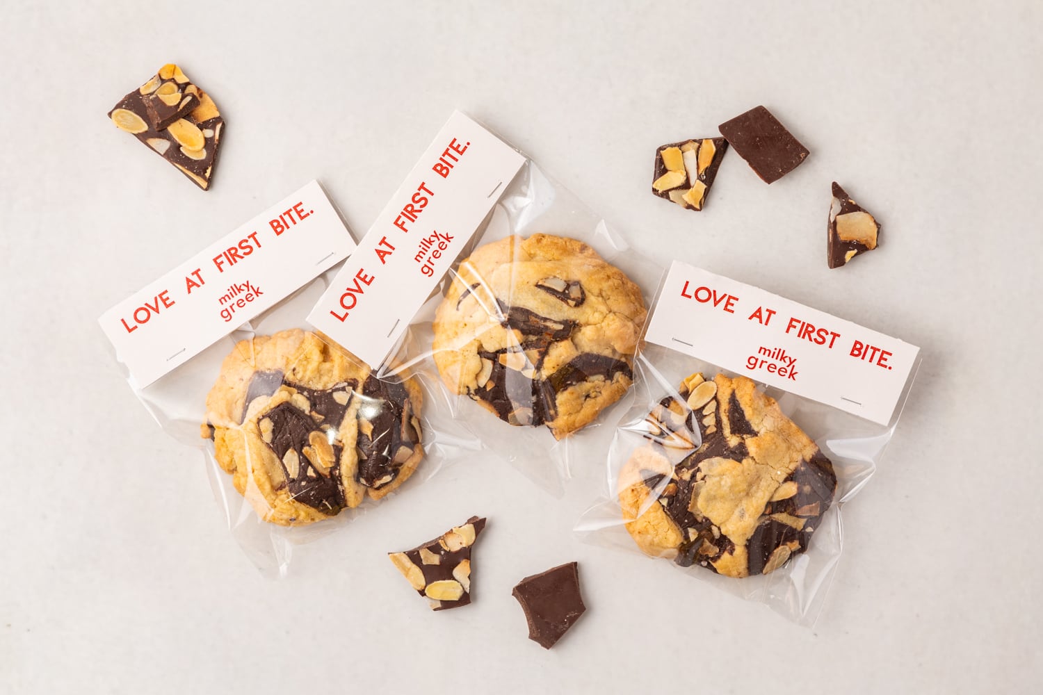 小麦粉を一切使わず、厳選した米粉だけで焼き上げたmilkygreekオリジナルのチョコチャンククッキー。